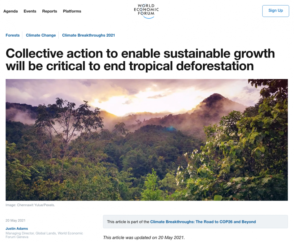 FACT (Forest, Agriculture, and Commodity Trade) Dialogues, an initiative launched be the UK government as a part of their COP26 Presidency, will be supported by the Tropical Forest Alliance of the WEF. It aims to bring stakeholders together to transition to more sustainable economies.